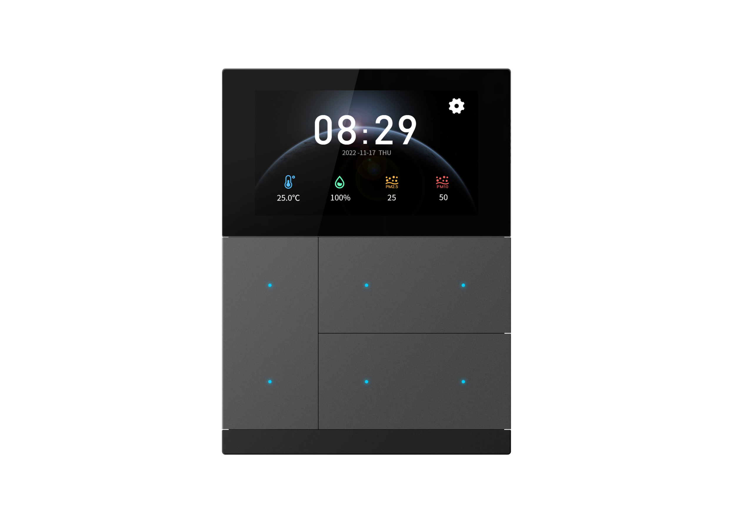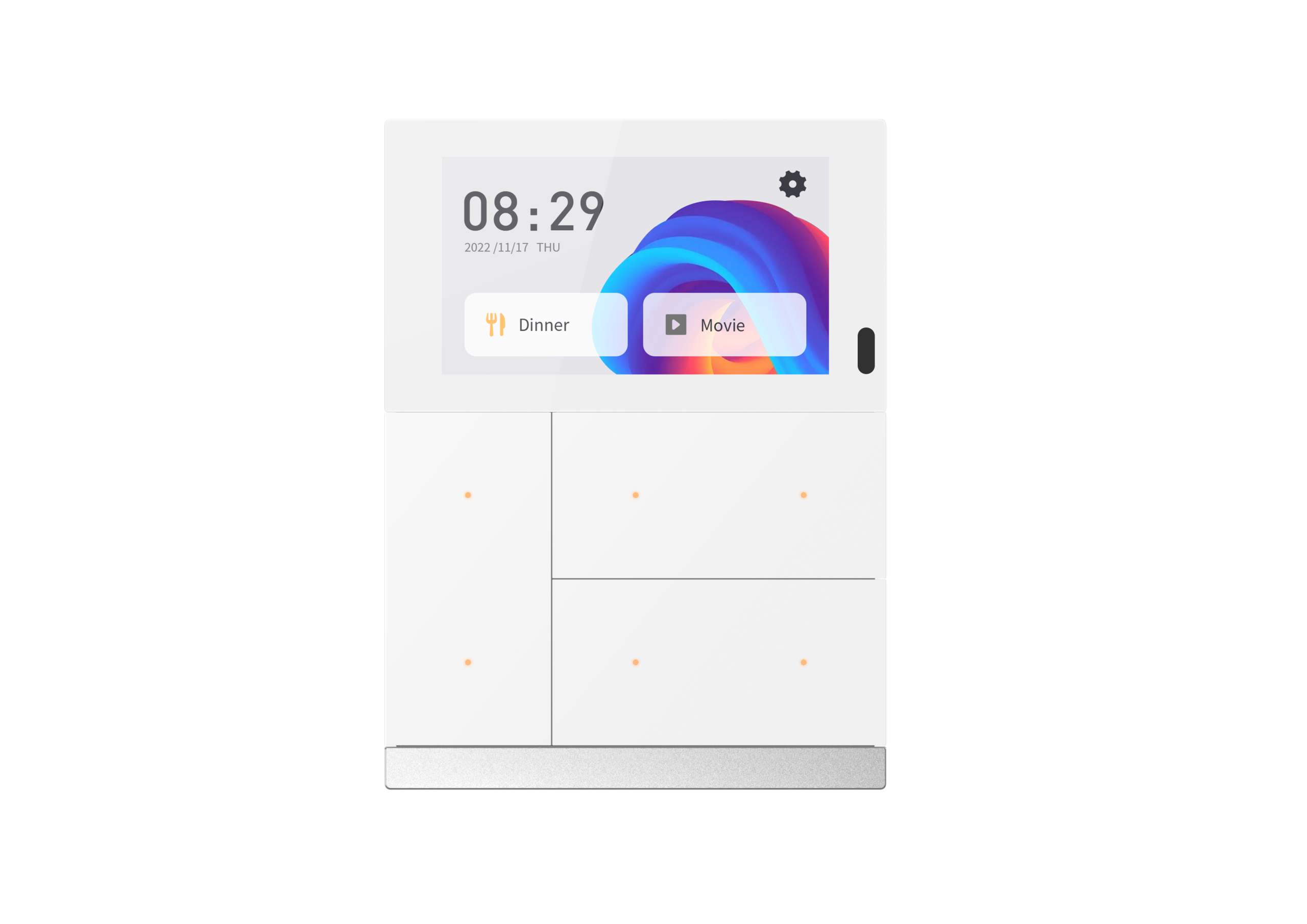Pour une expérience domotique cohérente, complétez votre installation avec les Boutons-poussoirs GVS KNX. Partageant la même ligne esthétique et les mêmes finitions (Noir, Blanc, Or, Gris, Argent), ils s'associent parfaitement au Waltz Touch pour offrir un contrôle intuitif et élégant dans chaque pièce de votre maison.